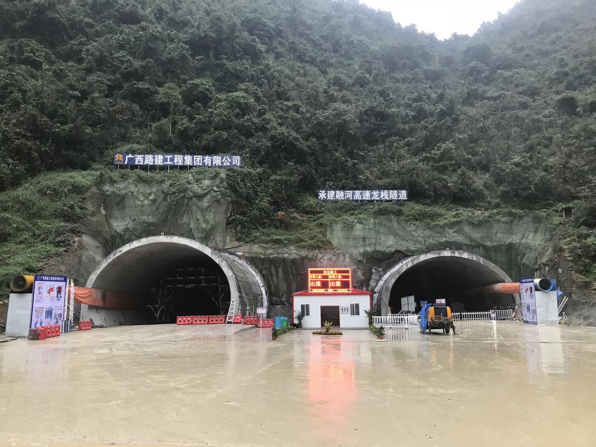 融水至河池高速公路属自治区层面统筹推进的重大项目。其中,五分部路线全长17.108km,全线共计桥梁21座,隧道1座,桥隧比为51%。龙栈隧道位于白屯村龙栈屯,左线长480米,右线长460米,左右洞在间隔20米的并行线上,属分离式小净距短隧道。融河五分部秉承“把融河高速建设成为‘品质工程、绿色公路’”的建设理念,自项目进场筹备伊始,施工团队坚持真抓实干、科学施工,奋力把龙栈隧道打造成融河高速标杆工程,为融河高速的早日通车不懈奋斗。