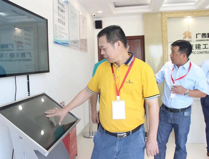 广西路建集团副总经理陆宏新(左二)到交建公司指导“升甲”工作